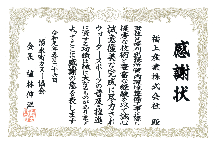 NEWS お知らせ HOMENEWS感謝状をいただきました 感謝状をいただきました 2020/01/29 令和元年5月26日に湧水町カヌー協会から轟地区の整備について感謝状をいただきました。前日には、第39回九州ブロックカヌー大会のカヌー大会会場設営などのお手伝いを行いました。 BACK TO LIST